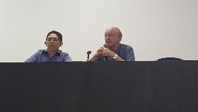 A palestra ministrada pelo Prof. José Murilo de Carvalho ocorreu no Auditório Noé Mendes, no Centro de Ciências Humanas e Letras, e foi mediada pelo Prof. Johny Santana de Araújo, cuja tese de doutorado, estudo sobre a participação de piauienses na Guerra do Paraguai, se encontra citada no recém-lançado livro do convidado.