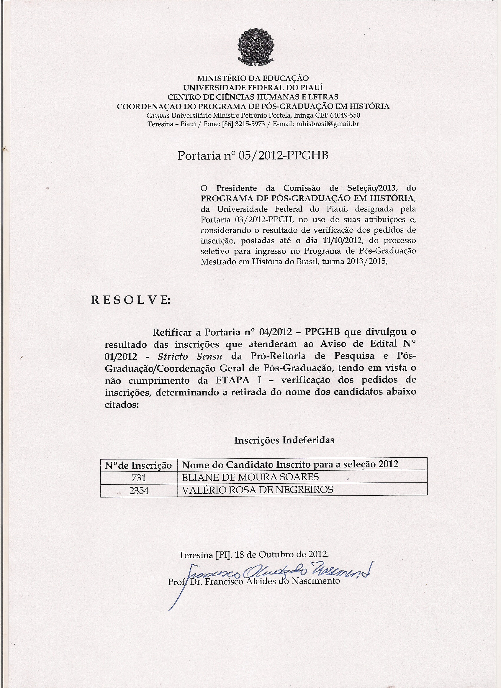 Retificação da Portaria nº 04/2012 - PPGHB