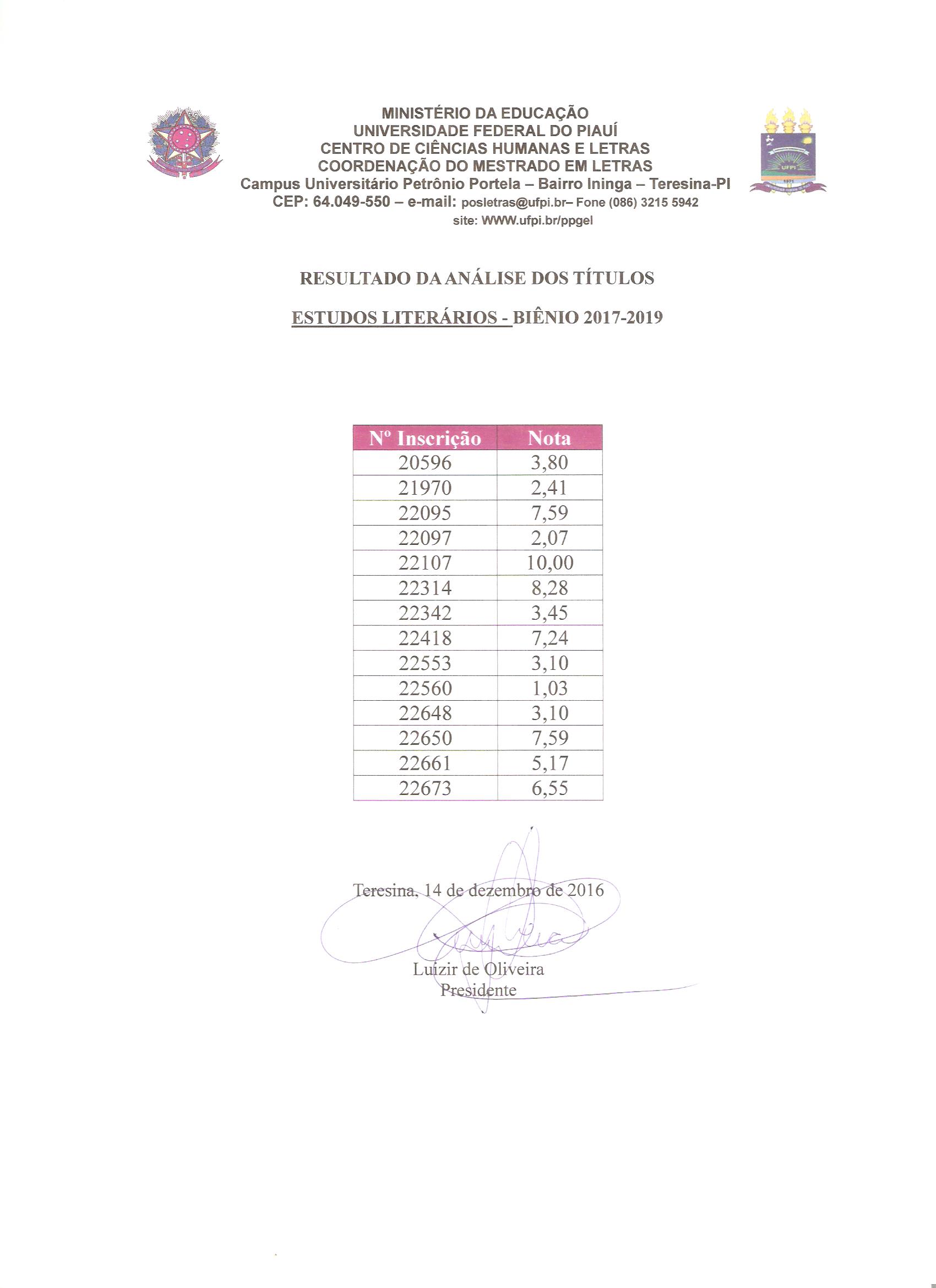 Resultado da prova de títulos - Literatura