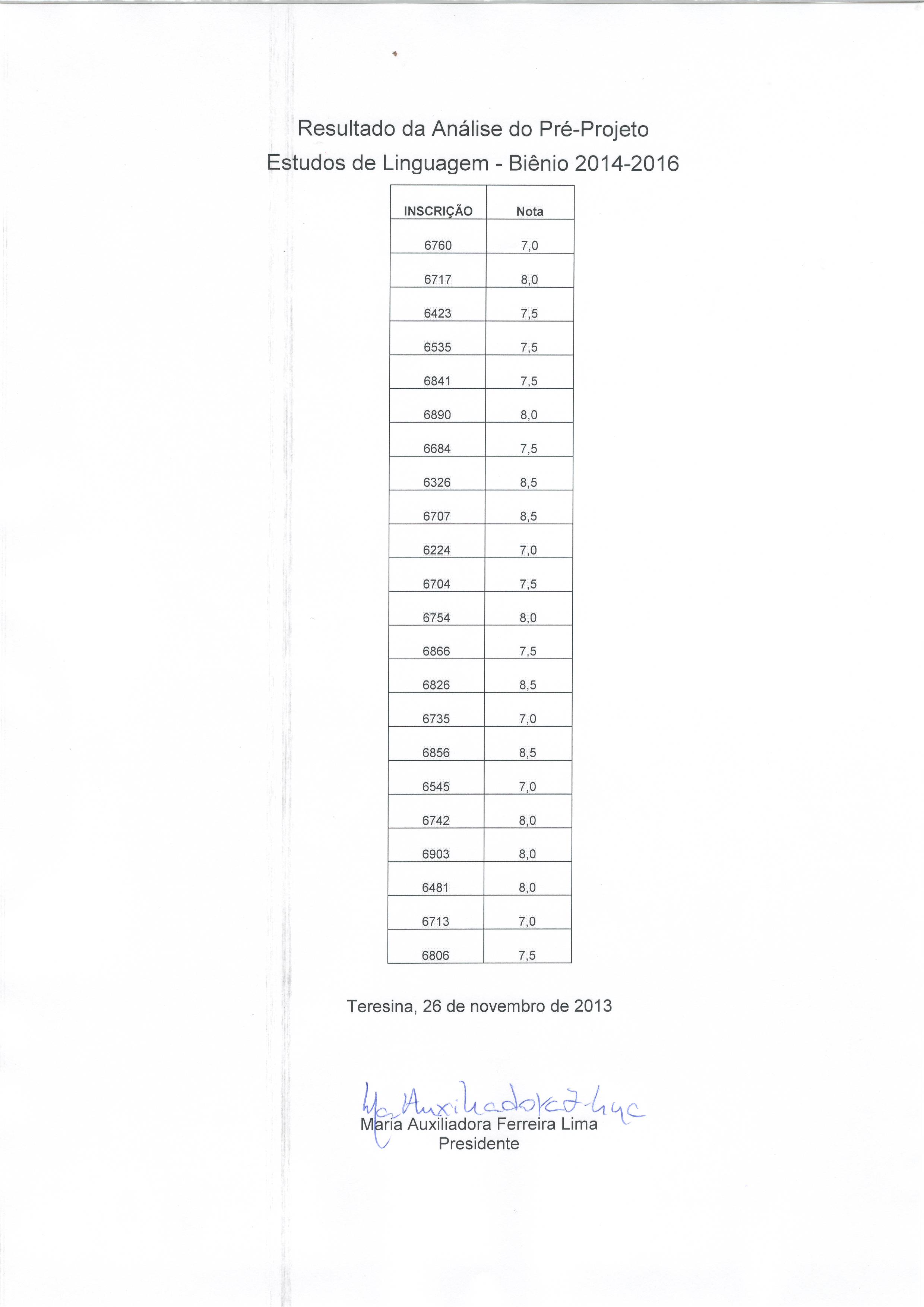 Resultado da análise de pré-projetos Estudos de Linguagem.