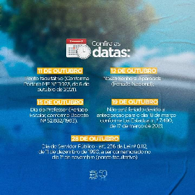 Informamos que em decorrência do feriado do Dia do Professor (15/10), a publicação, na página da UFPI, do resultado da homologação das inscrições do EDITAL PPGGEO/UFPI No 01/2021 - Turma 12 (2022-2024), somente ocorrerá na segunda-feira (18/10/2021), juntamente com o aditamento 04 ao EDITAL 01/2021.