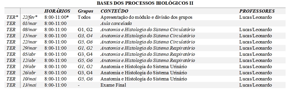 Segue a correção do cronograma de Práticas de BPBII.