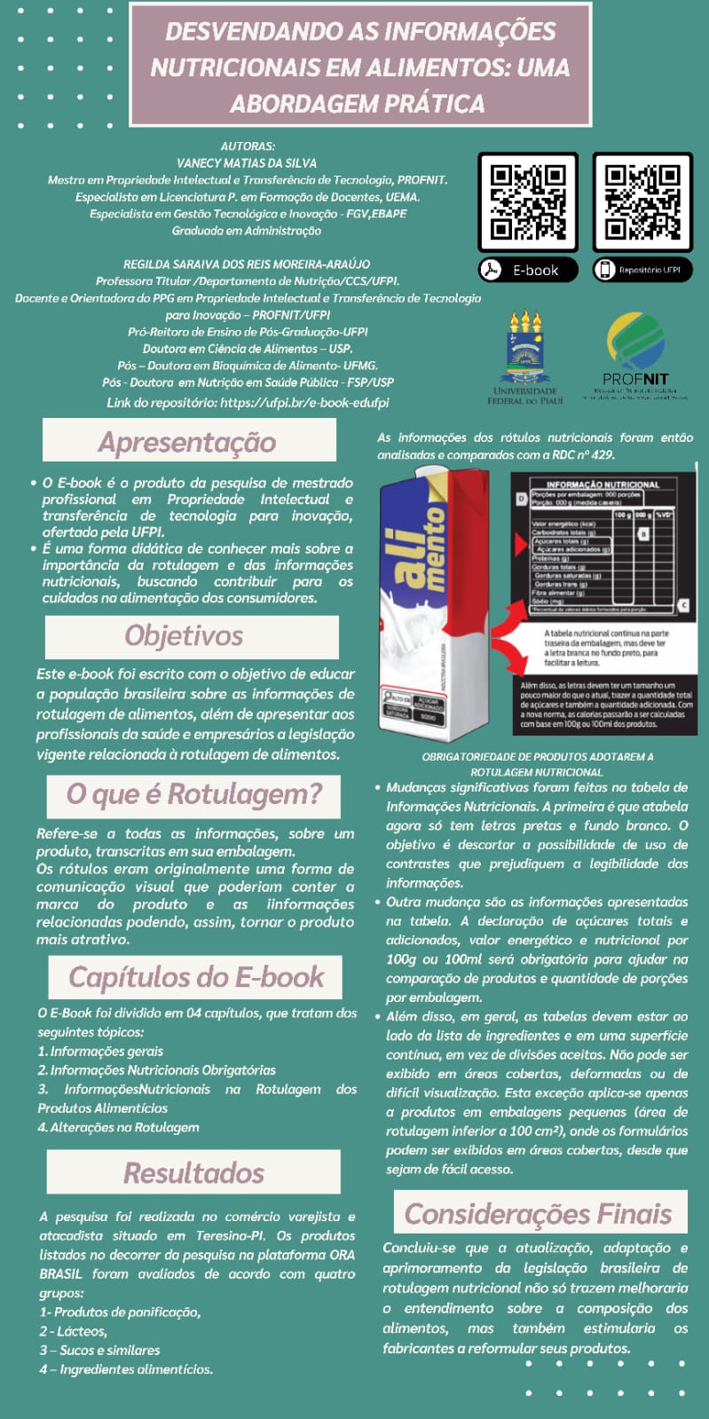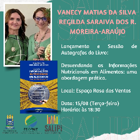 O PROFNIT-UFPI convida toda comunidade acadêmica a participar do lançamento e sessão de autógrafos do Livro DESVENDANDO AS INFORMAÇÕES NUTRICIONAIS EM ALIMENTOS: UMA ABORDAGEM PRÁTICA, de autoria da egressa Vanecy Matias da Silva e da Professora Doutora Regilda Saraiva.
