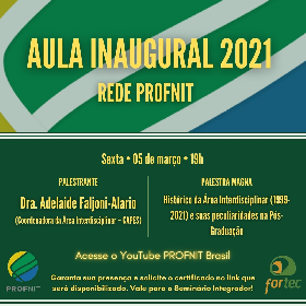 Rede O PROFNIT-UFPI convida os ingresantes, turma 2021, e todos os docentes para a aula inaugural promivida pela Rede PROFNIT, dia 05/03, às 19h no site https://www.youtube.com/c/PROFNITBrasil