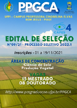 A Universidade Federal do Piauí (UFPI) torna pública a abertura das inscrições à seleção de candidatos ao Programa de Pós-Graduação em Ciências Agrárias para ingresso em 2022.1.