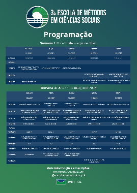 O Programa de Pós-Graduação em Ciência Política da UFPI informa à comunidade acadêmica a abertura das atividades da 3ª Escola de Métodos em Ciências Sociais, promovida pelo Instituto de Ciência Política da Universidade de Brasília (UnB). O curso será presencial, em Brasília, e representa uma oportunidade única para qualificação avançada em métodos de pesquisa. Encorajamos especialmente os discentes do Mestrado em Ciência Política da UFPI que tiverem disponibilidade a participar da iniciativa, dada sua relevância para o aperfeiçoamento metodológico e ampliação das competências analíticas.