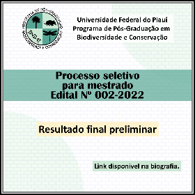 A Comissão de Seleção para ingresso no Programa de Pós-Graduação em Biodiversidade e Conservação (PPGBC/UFPI), período letivo 2023.1, no uso de suas atribuições legais e, torna público o resultado final preliminar, de acordo com o item 3.4.1, do Edital Nº 002/2022 – PPGBC. O resultado completo pode ser visto no arquivo em anexo, acessável pelo link ao final desta notícia.