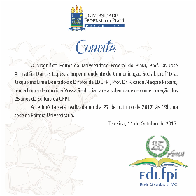 O lançamento institucional ocorrerá como parte da solenidade de comemoração dos 25 anos da Editora Universitária. A cerimônia será realizada no dia 27 de outubro de 2017, às 19h, na sede da EDUFPI.