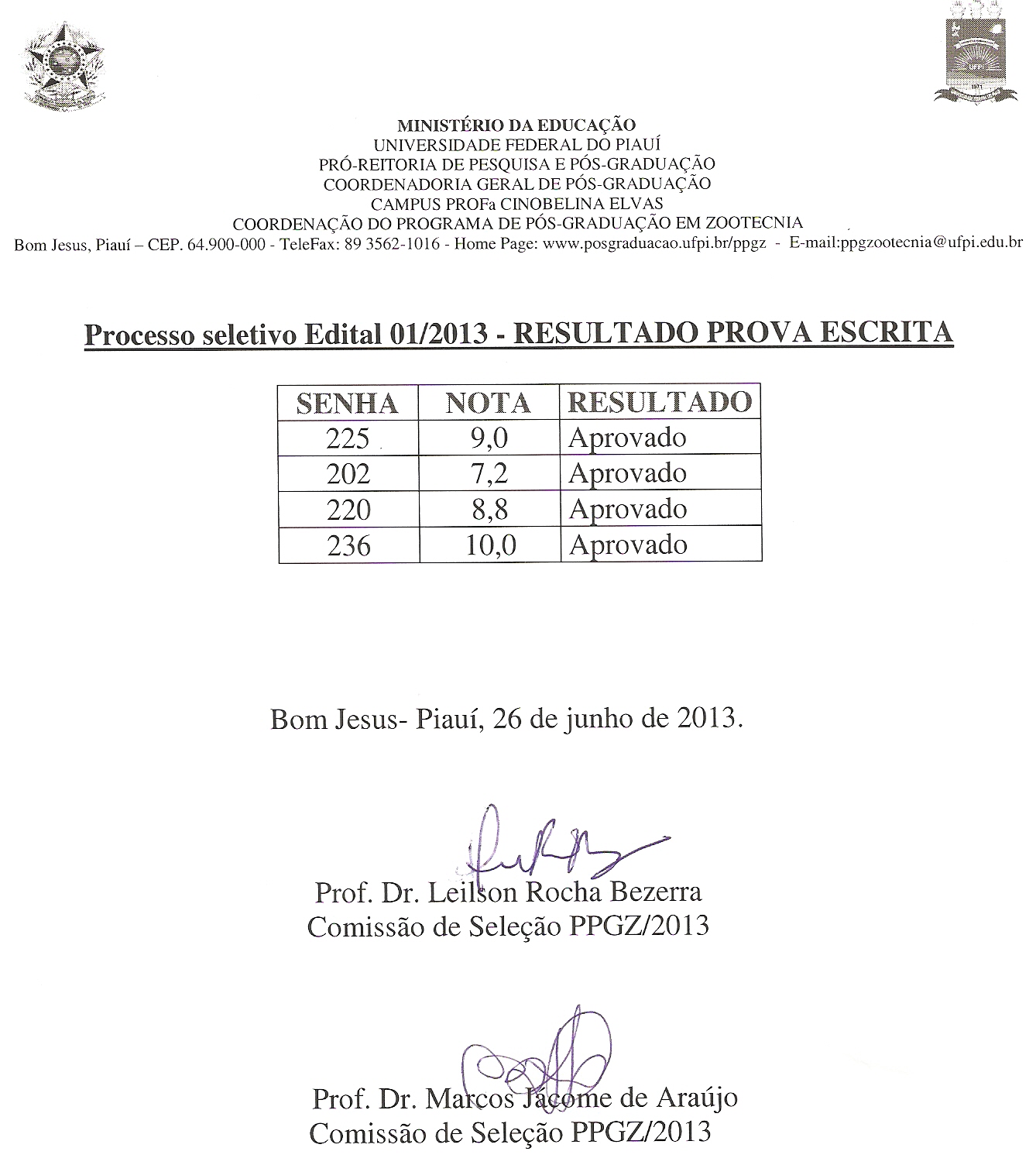 Resultado da 1ª etapa da Seleção do PPGZ Edital nº1/2013 - Prova escrita