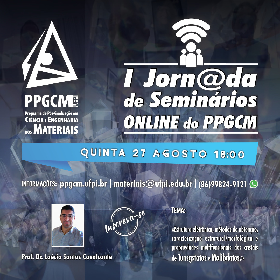 Abertas para o público em geral as inscrições para a 15a. Palestra da I Jornada de Seminários Online do PPGCM a ser realizada na próxima quinta, às 18 horas, via Live do Youtube, sendo este Seminário ministrado pelo Prof. Dr. Laécio Santos Cavalcante, docente do PPGCM e da UESPI, cujo título é "Estrutura Eletrônica, Métodos de Obtenção, Caracterização Estrutural/Morfológica e Propriedades Multifuncionais dos Cristais de Tunsgstatos e Molibdatos", dia 27/08/2020.