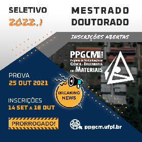 Mais informações da Seleção de Mestrado e Doutorado no site do PPGCM -> CONFIRA AQUI.