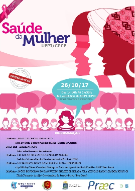 A Universidade Federal do Piauí, por meio da Pró-Reitoria de Assuntos Estudantis e Comunitários (UFPI/PRAEC), do Núcleo de Assistência Estudantil (NAE) – Campus Professora Cinobelina Elvas (Bom Jesus) promove, no auditório do Campus Professora Cinobelina Elvas – CPCE, no dia 26 de outubro de 2017, palestra sobre saúde da mulher. Direcionada a servidores e alunos da UFPI e do Colégio Técnico de Bom Jesus (CTBJ), além da comunidade em geral.