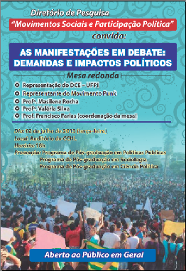 Nesta terça-feira, dia 02/07, às 18 horas, no Auditório do CCHL as manifestações de rua do Brasil estarão em pauta!