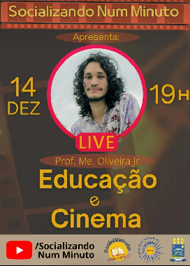 Olá! É com imensa satisfação que vos convidamos à participar da live inaugural do projeto socializando num minuto. Nossa live terá a ilustre participação do Prof. Me. Oliveira Jr. Falando sobre educação e cinema.