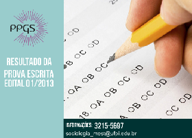 Confira o resultado da 2° Etapa Prova escrita do processo seletivo, edital 01/2013 para a 3° Turma de mestrado do programa de pós-graduação em sociologia PPGS - UFPI.