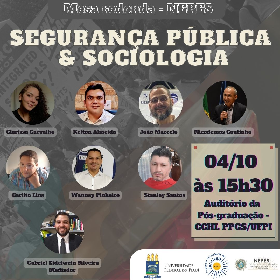 A mesa redonda é composta de egressos do PPGS-UFPI, os quais realizam pesquisas sociológicas na área de segurança pública, e abordará os seguintes temas: “Mulheres encarceradas e afetos” (Clarissa da Costa Carvalho); “A aplicação da doutrina de polícia comunitária entre as forças de segurança e a redução dos índices de criminalidade violenta” (Kelton Almeida Machado); “Homicídio íntimos no Piauí” (João Marcelo Brasilero de Aguiar); “A atuação de facções criminosas em Teresina” (Nicodemos Coutinho de Meneses); “A inserção das feminilidades no policiamento militar” (Carlito Lins de Almeida Filho); “Famílias encarceradas: os efeitos colaterais da prisão nas famílias” (Wanney Cavalcante Pinheiro); e “Uso de tecnologias na polícia militar do Piauí para análise espacial do crime em Teresina - PI” (Stanley dos Santos Oliveira). A mediação será realizada pelo professor Gabriel Eidelwein Silveira.