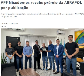 O egresso do PPGS, Nicodemos Coutinho de Meneses, que durante sua jornada no mestrado fora orientado pelo Prof. Dr. Gabriel Eidelwein Silveira, recebeu no ultimo dia 10 de julho de 2024 premiação concedida pela Associação Brasileira dos Papiloscopistas Policiais Federais - ABRAPOL, na categoria Publicação Científica de Repercussão em 2022/2023 - Capítulo de Livro. Nicodemos é coautor do texto "Uma metodologia para a produção de conhecimento em segurança pública por meio de recursos de visualização de dados e informações".