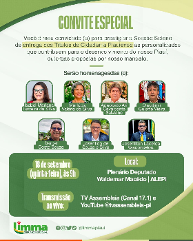 Você é nosso convidado(a) para a Sessão Solene de entrega dos Títulos de Cidadania Piauiense, que celebra personalidades que contribuem de forma significativa para o desenvolvimento do Piauí.