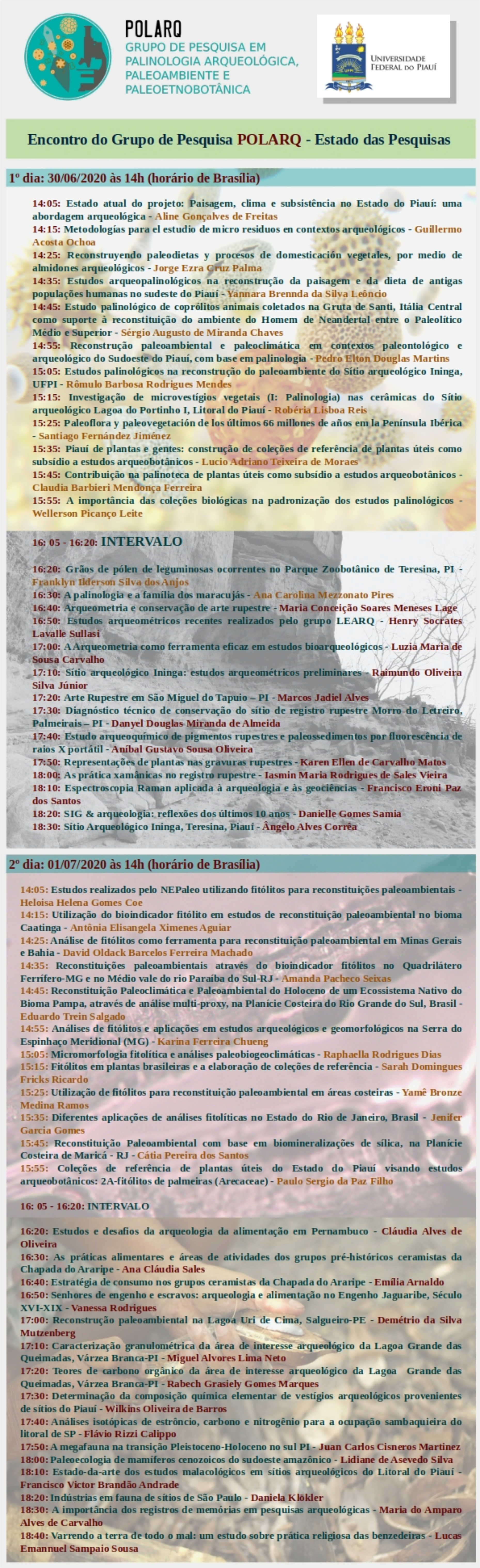 Os objetivos do evento são: a) popularizar e divulgar a produção acadêmico-científica e estimular a interlocução entre docentes, discentes e profissionais da arqueologia e áreas afins nas temáticas a abordadas, e com o público em geral; b) promover a internacionalização das arqueociências e suas interfaces com as geociências, biociências e geotecnologias, através do intercâmbio entre pesquisadores colaboradores de diversas instituições do Brasil (UFPI, UFPE, UFS, UECE, UERJ, UFF, IFPI, MUSEU NACIONAL/UFRJ, ENSP/FIOCRUZ, UNICAMP, UFRGS) e do Exterior (Espanha-Universidad de Murcia e México-Universidad Nacional Autónoma de México); c) apresentar o Estado-da-Arte das pesquisas desenvolvidas no POLARQ e discutir os métodos e técnicas aplicados às pesquisas em: Arqueobotânica (Palinologia, Fitólitos e Grãos de Amido), Coleções de Referência em Microvestígios de Plantas (Palinologia, Fitólitos e Grãos de Amido), Paleobotânica, Paleoecologia, Paleoambientes, Arqueometria, Geoquímica Isotópica, Sedimentologia, Zooarqueologia, Megafauna do Quaternário, Arqueologia e Antropologia da Alimentação, Povos Ceramistas, Culturas, Memória e Oralidade, Arte Rupestre e Geotecnologias aplicadas à Arqueologia.
