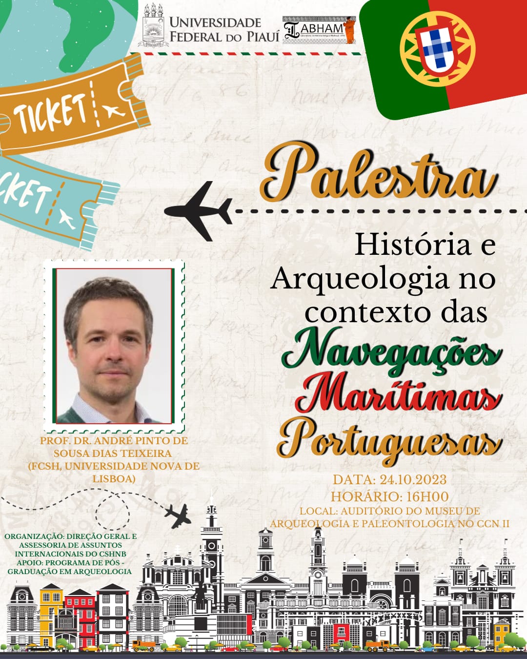 Convidados a todas/os/es para palestra, minicurso e roda de conversa com Profesor Dr. André Teixeira da Universidade Nova de Lisboa - UNL - do dia 24 a 26/10/2023 a realizar-se entre o Campus da UFPI de Teresina e de Picos.
