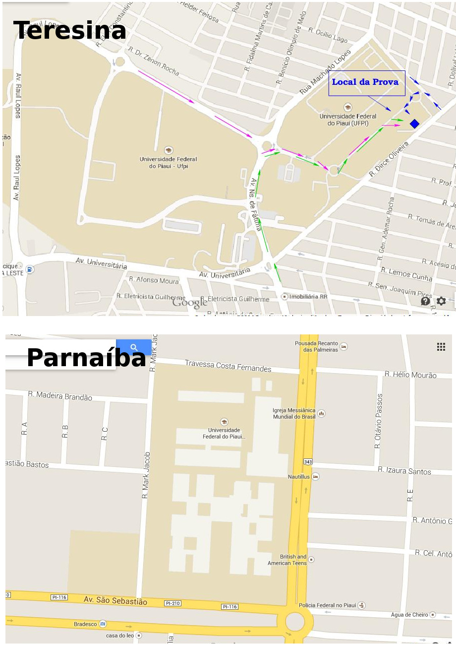 Locais de provas do Exame Nacional de Acesso 2015, Pólos de Teresina e Parnaíba