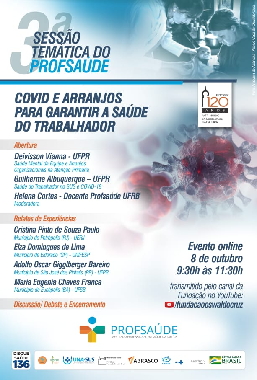 O Programa de Pós-Graduação em Saúde da Família - Mestrado Profissional - PROFSAÚDE, convida a comunidade acadêmica para a Terceira Sessão Temática da Rede PROFSAÚDE com a temática "COVID e arranjos para garantir a saúde do trabalhador". O evento online ocorrerá no dia 08 de outubro no horário 9:30h - 11:30h no canal da Fundação Oswaldo Cruz (FIOCRUZ) no Youtube.